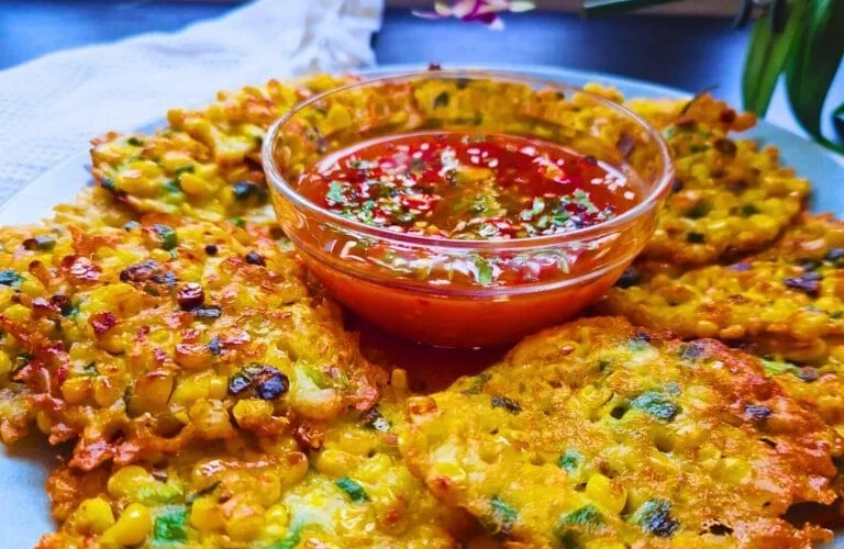 You can eat these Indonesian corn cakes as a snack, but they also make you crave a full meal. The sweet corn, the crunchy spring onions, and the quiet hum of the coriander will all taste different when you eat it.